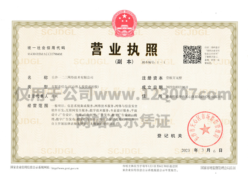 版權(quán)所有 © 長(zhǎng)沙一二三網(wǎng)絡(luò)技術(shù)有限公司    統(tǒng)一社會(huì)信用代碼:91430103MACCH7984M    網(wǎng)站ICP備案號(hào):湘ICP備2023006748號(hào)     湘公網(wǎng)安備 43010302001803號(hào)