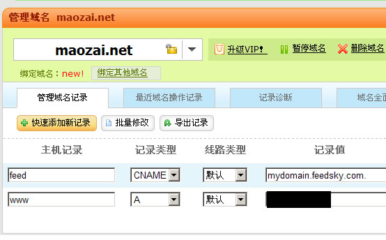 Dnspod的域名解析還是比較容易的,大家可以自己摸索著設置。至此,整個過程設置完畢,以后如果需要域名解析記錄,只需要登陸 dnspod修改即可,不在需要登陸godaddy,甚是快捷、方便吧!